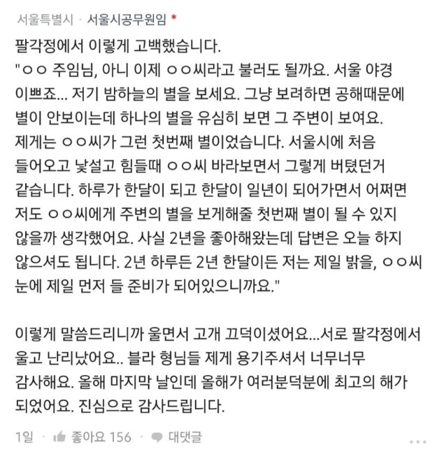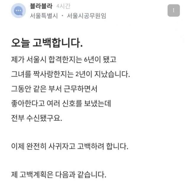 고백 박으러 간다는 서울시 공무원 블라인드 후기