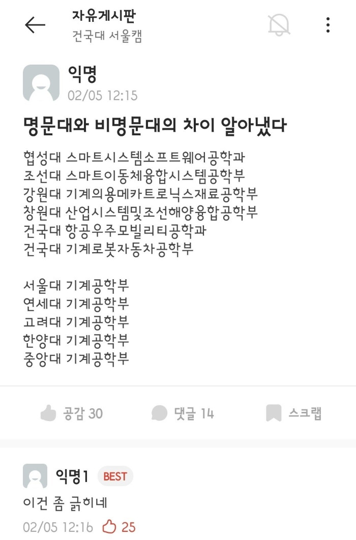 명문대와 비명문대 구별하는 방법