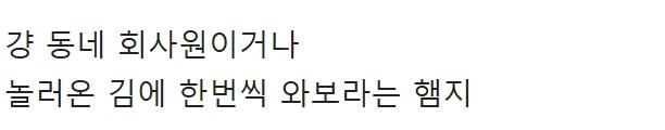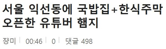 1340만명 유튜버 햄지가 오픈해서 초대박난 식당 10월 23, 2025 작성자: ddd 댓글 남기기 응답 취소댓글이름 이메일 웹사이트 다음 번 댓글 작성을 위해 이 브라우저에 이름, 이메일, 그리고 웹사이트를 저장합니다. Δ