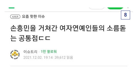 지금까지 손흥민 선수를 거쳐간 여자들의 공통점 ㄷㄷ 11월 7, 2025 작성자: ddd 댓글 남기기 응답 취소댓글이름 이메일 웹사이트 다음 번 댓글 작성을 위해 이 브라우저에 이름, 이메일, 그리고 웹사이트를 저장합니다. Δ