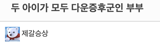 두 아이가 모두 다운증후군인 부부 11월 8, 2025 작성자: ddd 댓글 남기기 응답 취소댓글이름 이메일 웹사이트 다음 번 댓글 작성을 위해 이 브라우저에 이름, 이메일, 그리고 웹사이트를 저장합니다. Δ