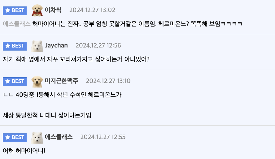 해리포터 찐팬만 아는 스네이프가 헤르미온느를 싫어한 이유 11월 10, 2025 작성자: ddd 댓글 남기기 응답 취소댓글이름 이메일 웹사이트 다음 번 댓글 작성을 위해 이 브라우저에 이름, 이메일, 그리고 웹사이트를 저장합니다. Δ