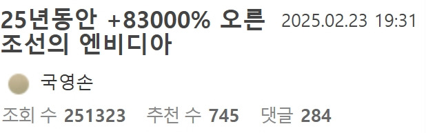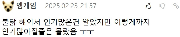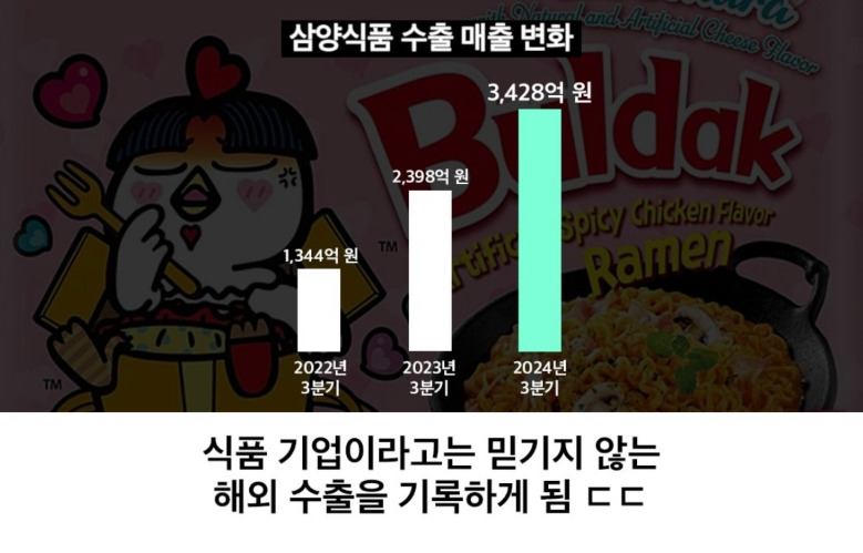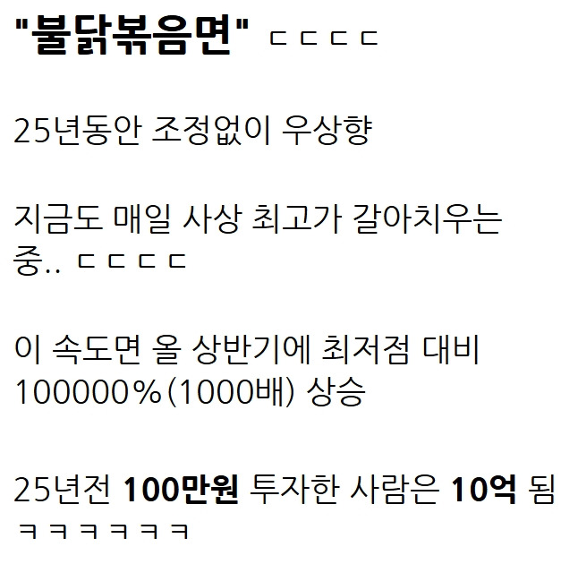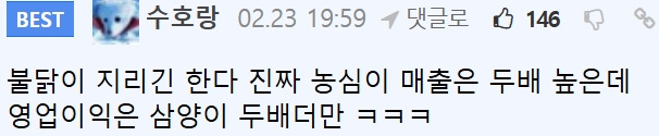 망해가던 삼양식품을 살려낸 불닭 며느리 12월 3, 2025 작성자: ddd 댓글 남기기 응답 취소댓글이름 이메일 웹사이트 다음 번 댓글 작성을 위해 이 브라우저에 이름, 이메일, 그리고 웹사이트를 저장합니다. Δ