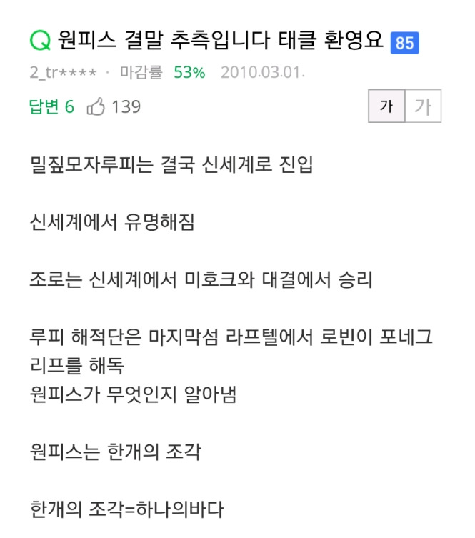 다시봐도 개쩌는 15년전 원피스 결말 예측한 지식인