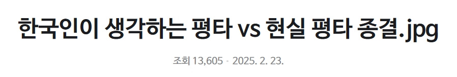 한국인이 생각하는 평타 vs 현실 평타 종결 12월 15, 2025 작성자: ddd 댓글 남기기 응답 취소댓글이름 이메일 웹사이트 다음 번 댓글 작성을 위해 이 브라우저에 이름, 이메일, 그리고 웹사이트를 저장합니다. Δ